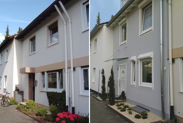 Umbau Reihenhaus in 67346 Speyer, Vorderseite vor und nach Umbau